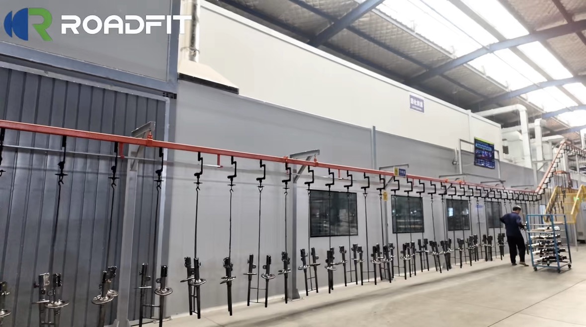 Painting is not merely about giving shock absorbers a uniform color. In harsh off-road environments, shock absorber housings are continuously exposed to impacts from gravel, corrosion from mud and water, UV radiation, and chemical erosion. A high-quality coating acts as a physical barrier that isolates corrosion, resists wear, and ensures the long-term stable operation of internal precision components. ROADFIT's painting line is designed precisely for this mission of "invisible protection."